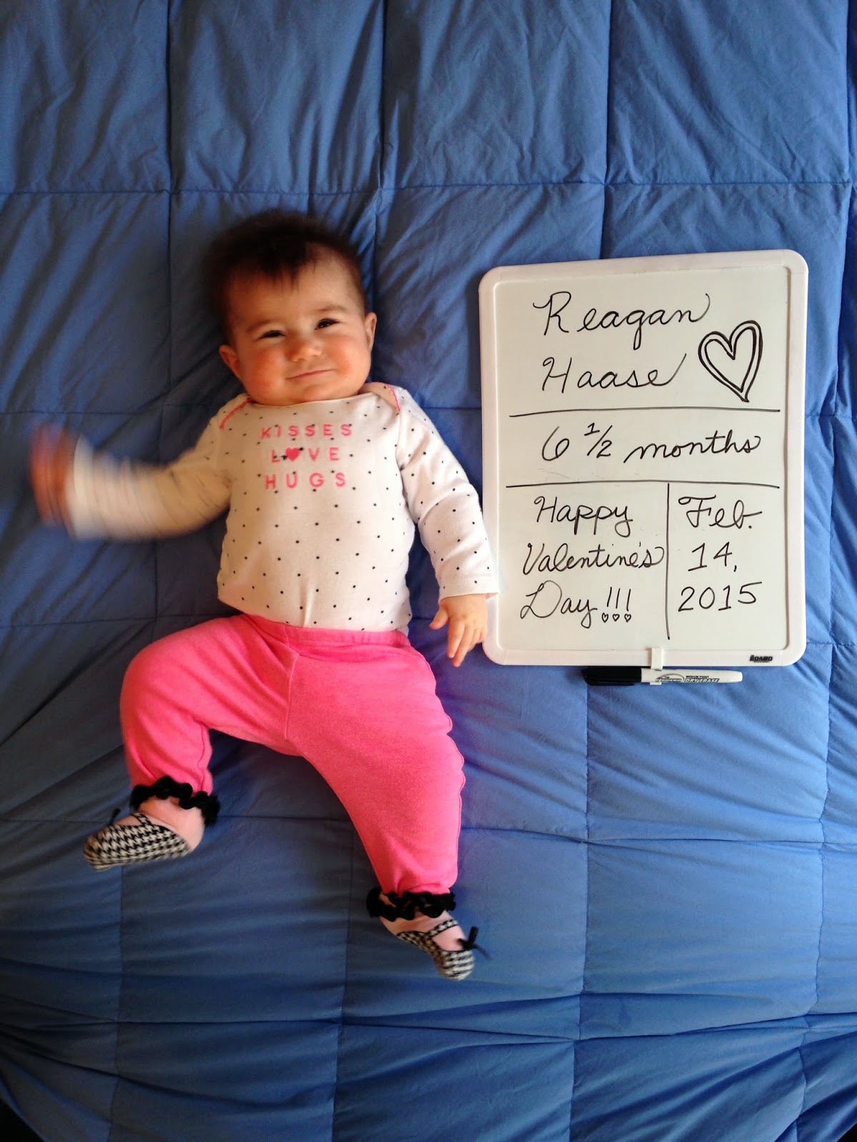 I couldn't resist... While Daddy's at work on Saturday, per his usual schedule at the golf club, and since Saturday just happens to be Valentine's Day, what else is Mommy going to do with Baby Reagan if she can't finish lesson plans, clean the apartment or go outside in the 20-degree weather while taking caring of a 6.5 month-old infant at the same time?! Take some pictures of a cute little girl in red and pink baby clothes, of course!!!